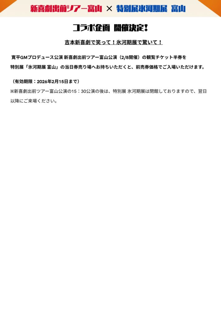新喜劇出前ツアー富山×特別展氷河期展 富山 コラボ企画!